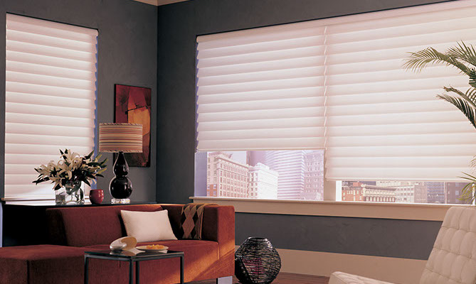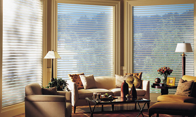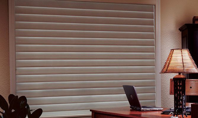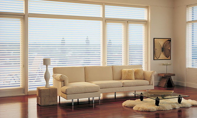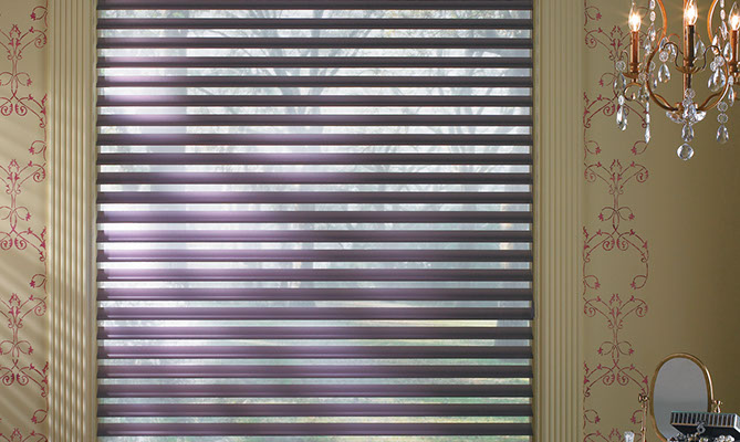 Elegância e suavidade aliada à privacidade e controle de luminosidade. Estes são alguns diferenciais da cortina Silhouette® da HunterDouglas®. A cortina possui lâminas de tecidos, suspensas entre duas suaves telas transparentes. Possui três níveis de privacidade, escurecimento e visibilidade.