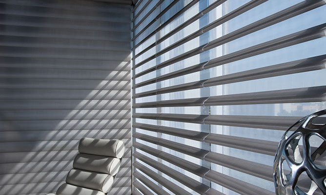 Destinada às grandes janelas e vãos de passagem, a cortina Luminette possibilita controle de luminosidade e oferece diferentes níveis de privacidade, de forma elegante esofisticada.