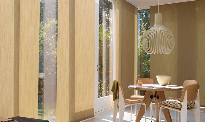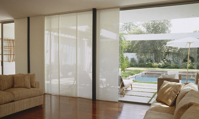 Composta por painéis intercalados, a cortina Painel oferece fácil acionamento. Por meio de seu trilho superior, os painéis de tecidos são movimentados de um lado para o outro, com recolhimento lateral ou bilateral. A cortina é indicada para uso em grandes espaços, sendo janelas evãos de passagem.
