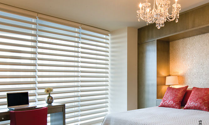 A decoração de janelas é um assunto que sempre chama atenção na arquitetura. Há diversas opções que podem ser escolhidas, desde as mais tradicionais às mais modernas. A cortina Pirouette® tem um grande diferencial: possui o exclusivo sistema lnvisi-lift, que recolhe os gomos do tecido com o uso de cordões não aparentes, permitindo o controle da quantidade de luz e a privacidade quando fechada.