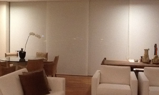 A Cortina Skyline também é uma excelente opção para a divisão de ambientes, proporcionando ao ambiente integração ou privacidade - de acordo com o movimento dos painéis.