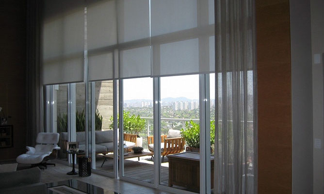 Outro benefício do produto é a ausência de frestas laterais, auxiliando o efeito blackout no ambiente, em situações de uso no ambiente interno.